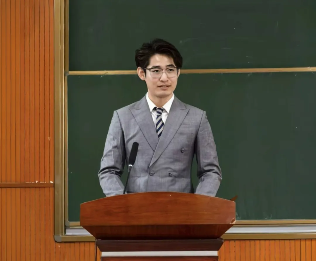 典礼第三项,2025级研究生新生代表孙伟康同学发言。孙伟康同学认为研究生阶段是探索与深耕并重的旅程,需要在协作中进步,在挑战中成长。他勉励同学们一要潜心经典,扎根传统,汲取中西治理智慧;二要掌握方法,精进技艺,提升学术研究洞见;三要走向现实,关切社会,传承红色精神基因。