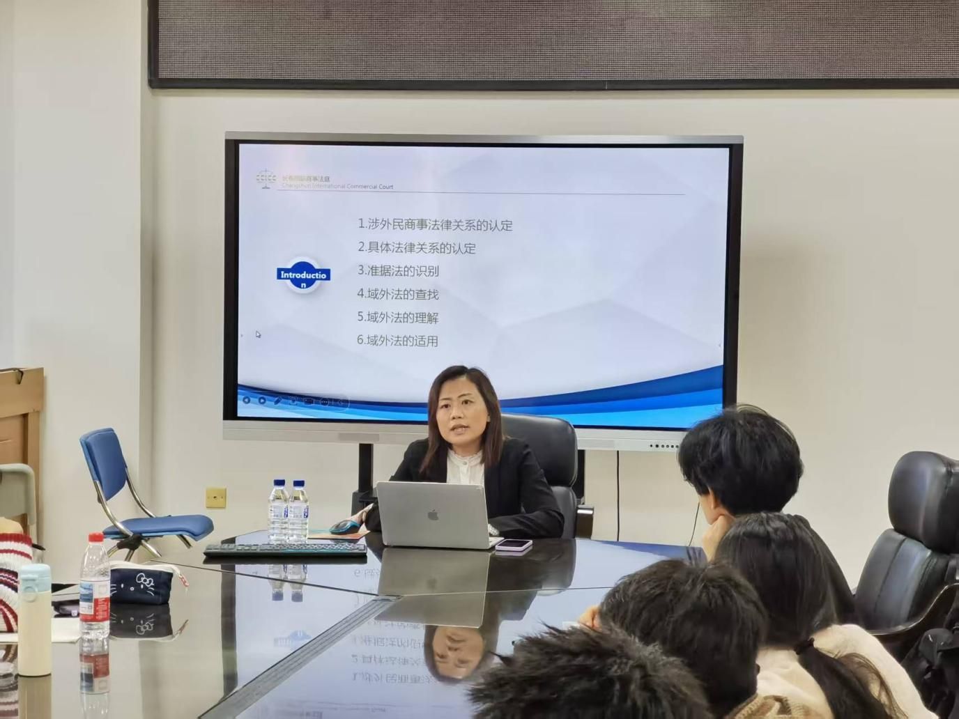 2025年12月6日下午1:30,第八期涉外法治论坛在学院三楼会议室成功举办。本次论坛特邀长春市中级人民法院国际商事法庭庭长、三级高级法官李雨萍主讲,她授课主题为《涉外司法案件的法律适用实务》,论坛由涉外法治微专业班主任张珊珊老师主持。