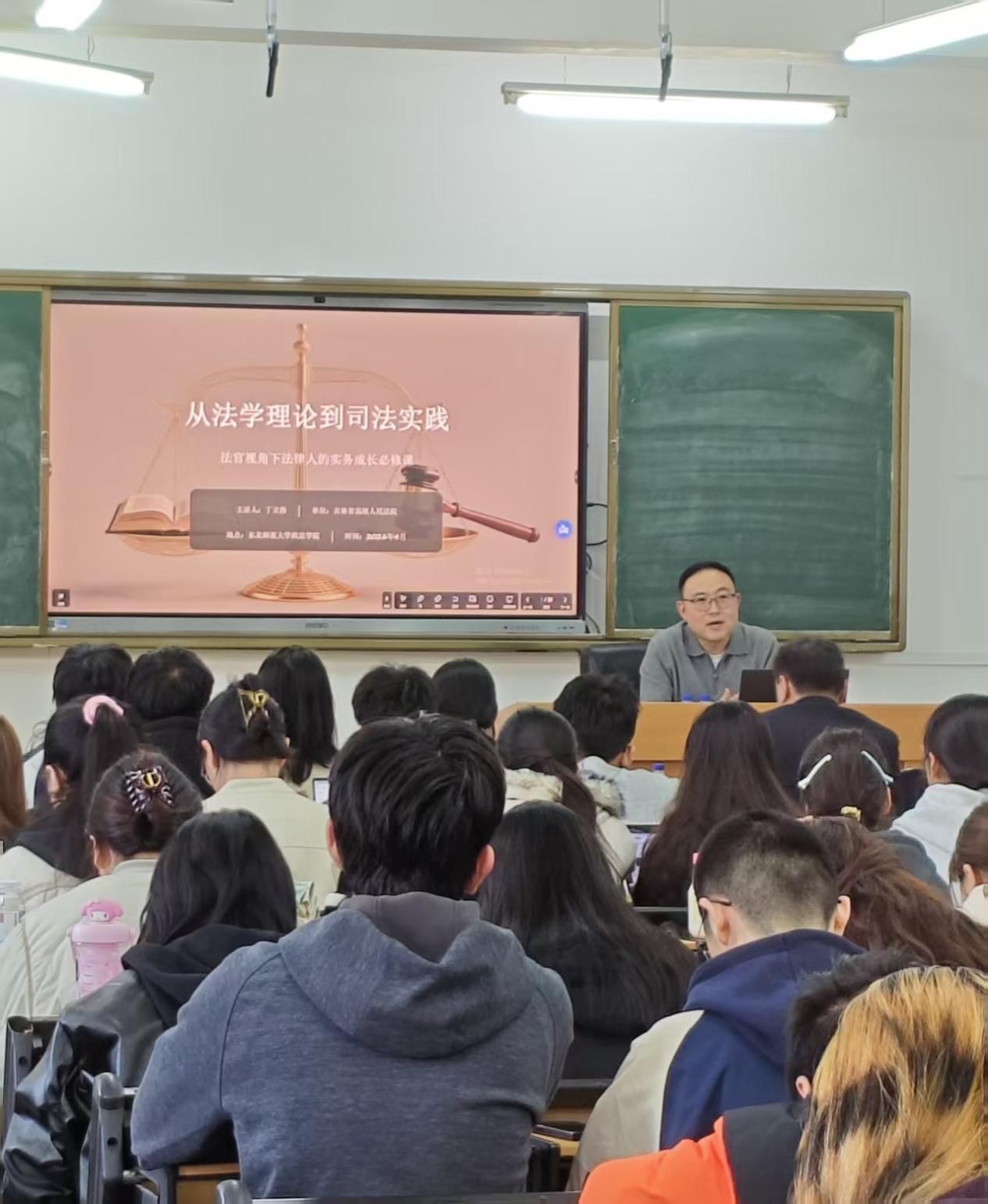 丁立伟法官拥有基层、中级、省级三级法院完整工作履历,深耕民事审判、刑事审判与审判管理多个领域,兼具扎实的一线办案经验与系统的司法管理素养。讲座中,他结合自身十余年司法实践经历,围绕“理论与实践的衔接”“实务能力的核心素养”“职业成长的关键路径”三大核心维度展开分享,通过典型案例拆解、裁判文书撰写技巧、庭审驾驭方法等实务内容,系统阐释了法律人从理论学习到司法实践的成长逻辑,深入剖析了法官视角下法律职业的责任与担当,为在场师生带来了一堂兼具专业性与实用性的实务成长课。